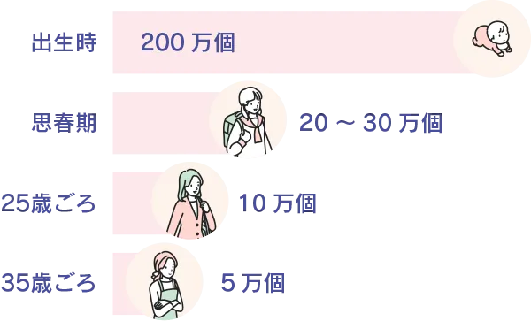 一生分の卵子数には個人差があるため、生まれた時から持っている卵子数が少ない人もいます。