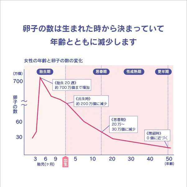 一生分の卵子数にも減少数にも個人差があるため、生まれた時から持っている卵子数が少ない人もいます。